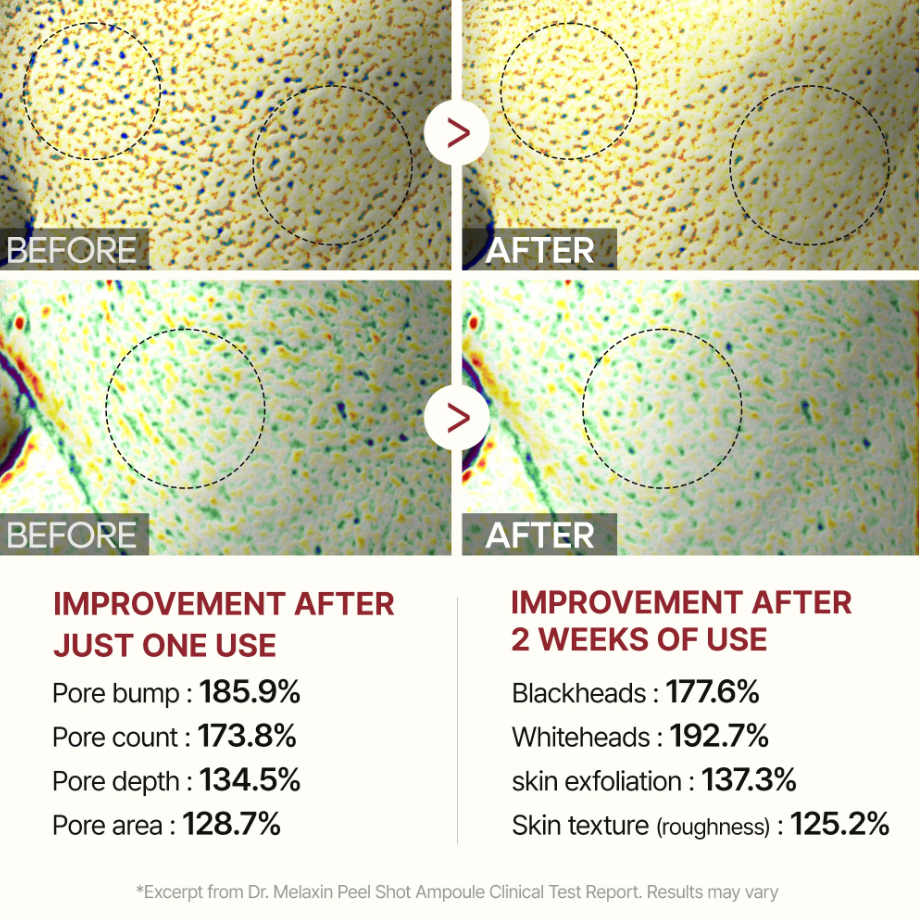 Discover the innovative care of Dr. Melaxin PeelShot Rice Ampoule. Unlike traditional peeling products, this advanced formula offers both exfoliation and absorption, gently removing dead skin cells while delivering nourishing ingredients. With every use, your skin will feel smoother, brighter, and more radiant, revealing a healthier-looking complexion.